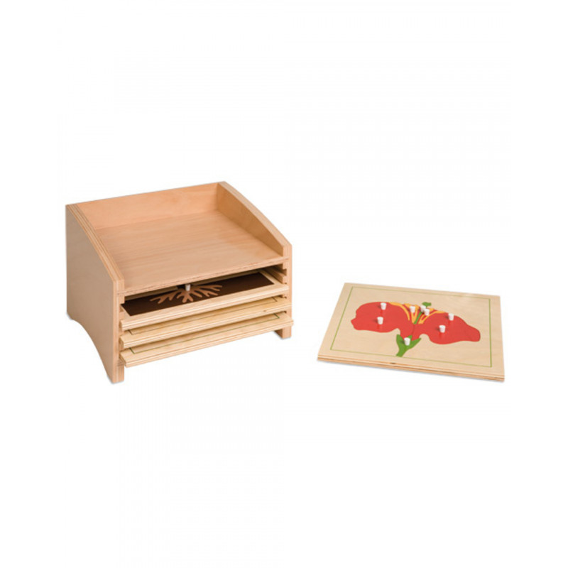 A beechwood plywood cabinet for storage of the small botany puzzles. (Insets not included)
