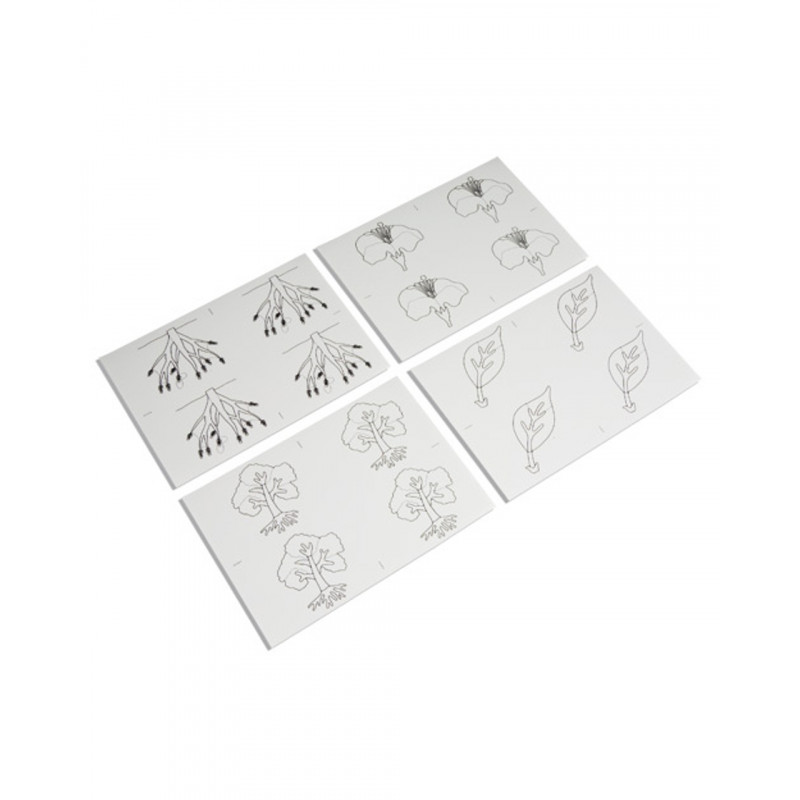 Four plastic cards with the Botany Puzzle illustrations for copying.