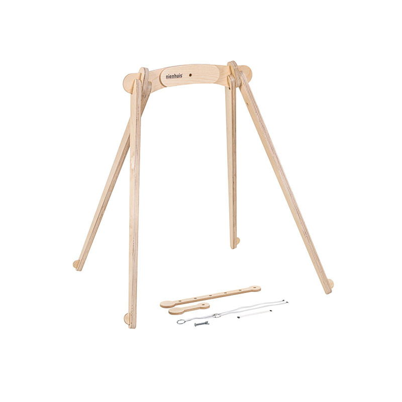 This wooden activity gym is designed to hang Montessori mobiles at the perfect height to engage your baby. The gym can be mounted without using any screws, which makes it easy to transport.