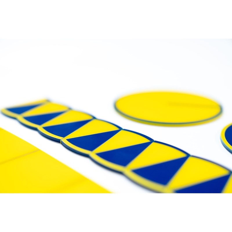 This material introduces children to the concept of pi (π) and its role in calculating a circle’s circumference and area. By this stage, they have already measured the circumference, radius, and area of polygons. When working with circles, they will use 3.14 as an approximation of pi, the ratio of a circle’s circumference to its diameter. A manual is included to support presenting and explaining the Theorem of Pi.