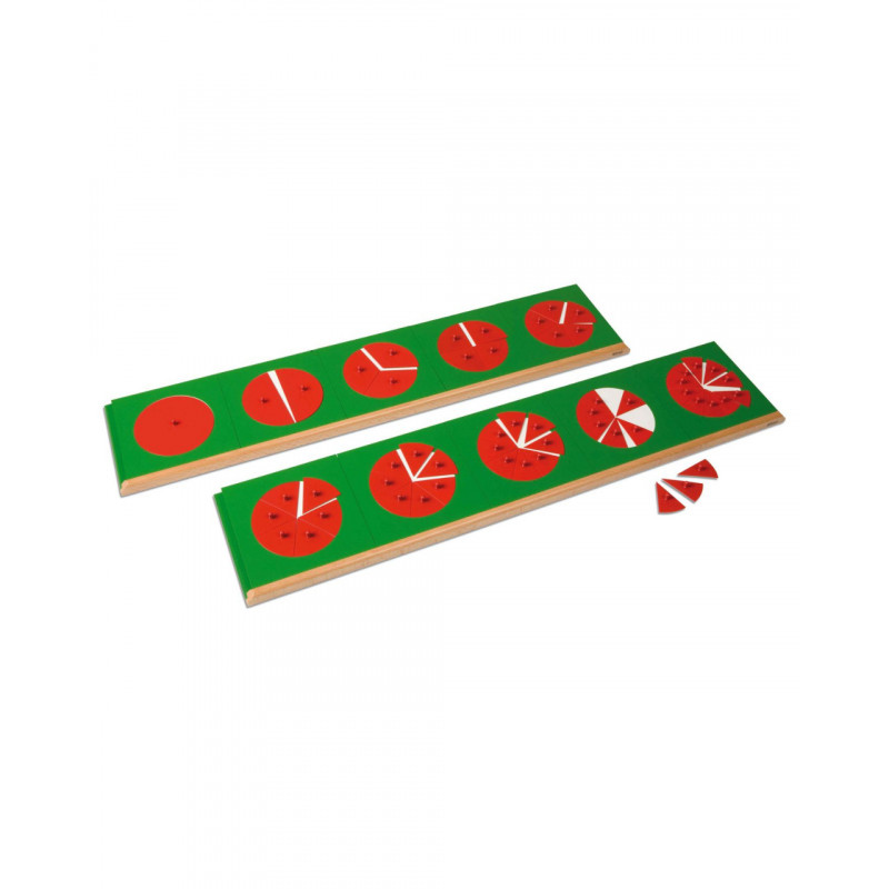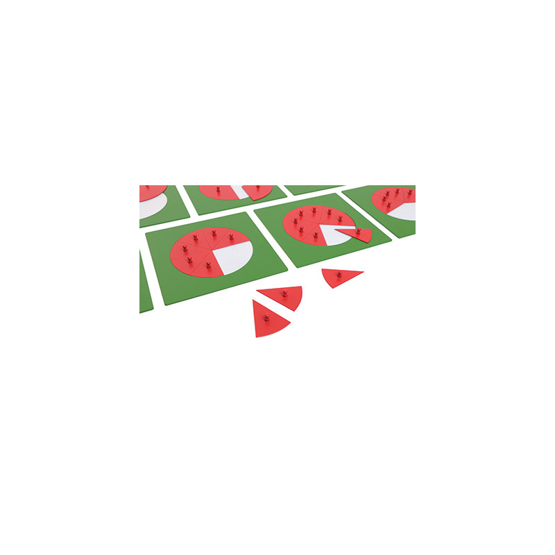 Gli Incastri delle Frazioni introducono il bambino al concetto di frazione. Il bambino è introdotto a tutti gli aspetti del lavoro con le frazioni, vale a dire, la terminologia corretta, l'equivalenza, le funzioni aritmetiche, la conversione in decimali, la misurazione di angoli, ecc.