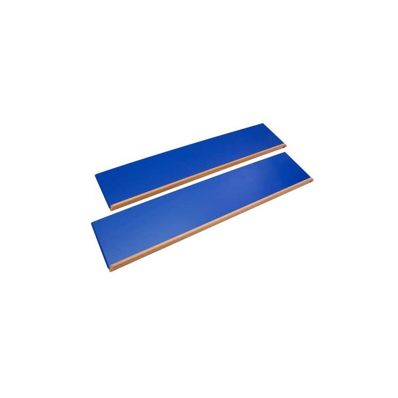 Serie di 2 mensole inclinate di colore blu: una per le figure a lato retto e una per le figure con lati curvi.