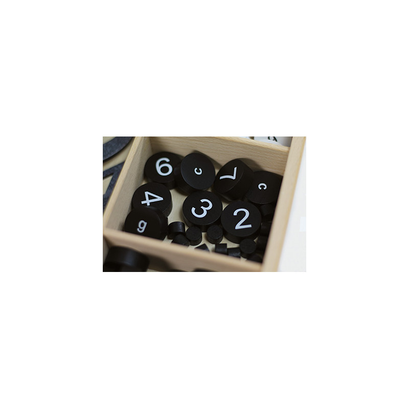 Materiale utilizzato per esercizi con le note (A, B, C, D, E, F, G) e la composizione musicale. Comprende una scatola di legno con 7 scompartimenti.