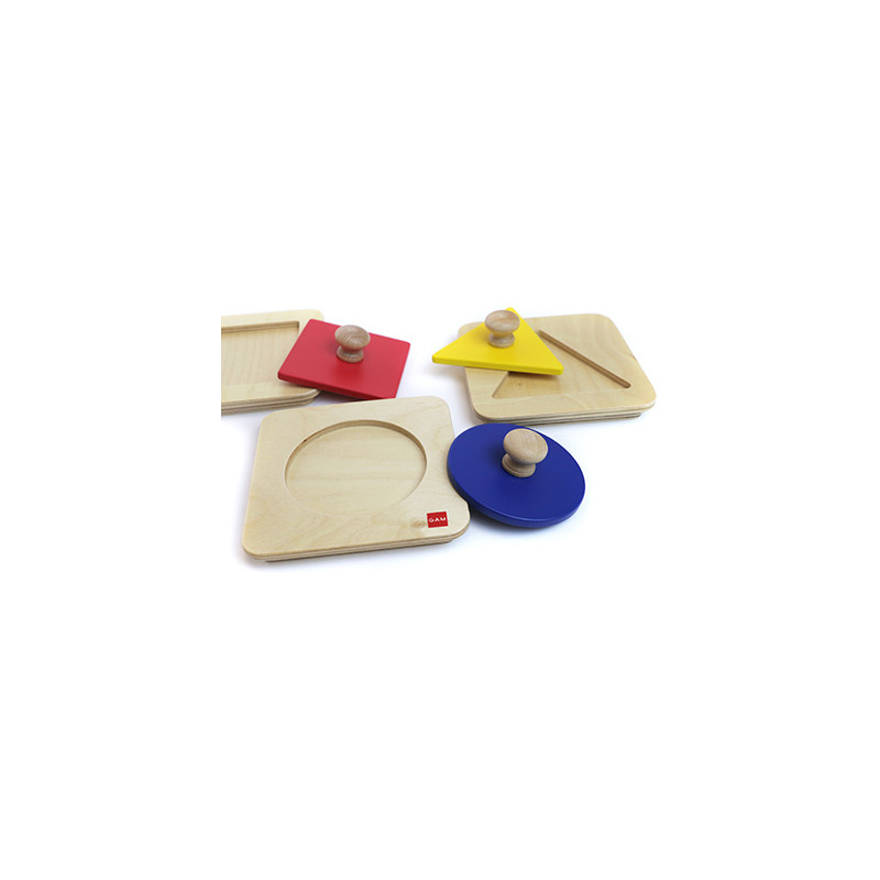 Set di 3 incastri singoli: un cerchio, un quadrato, un triangolo equilatero.